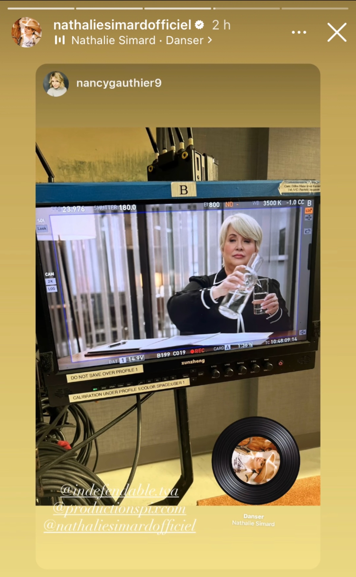 Elle a publié deux photos de Nathalie Simard sur le plateau de tournage.