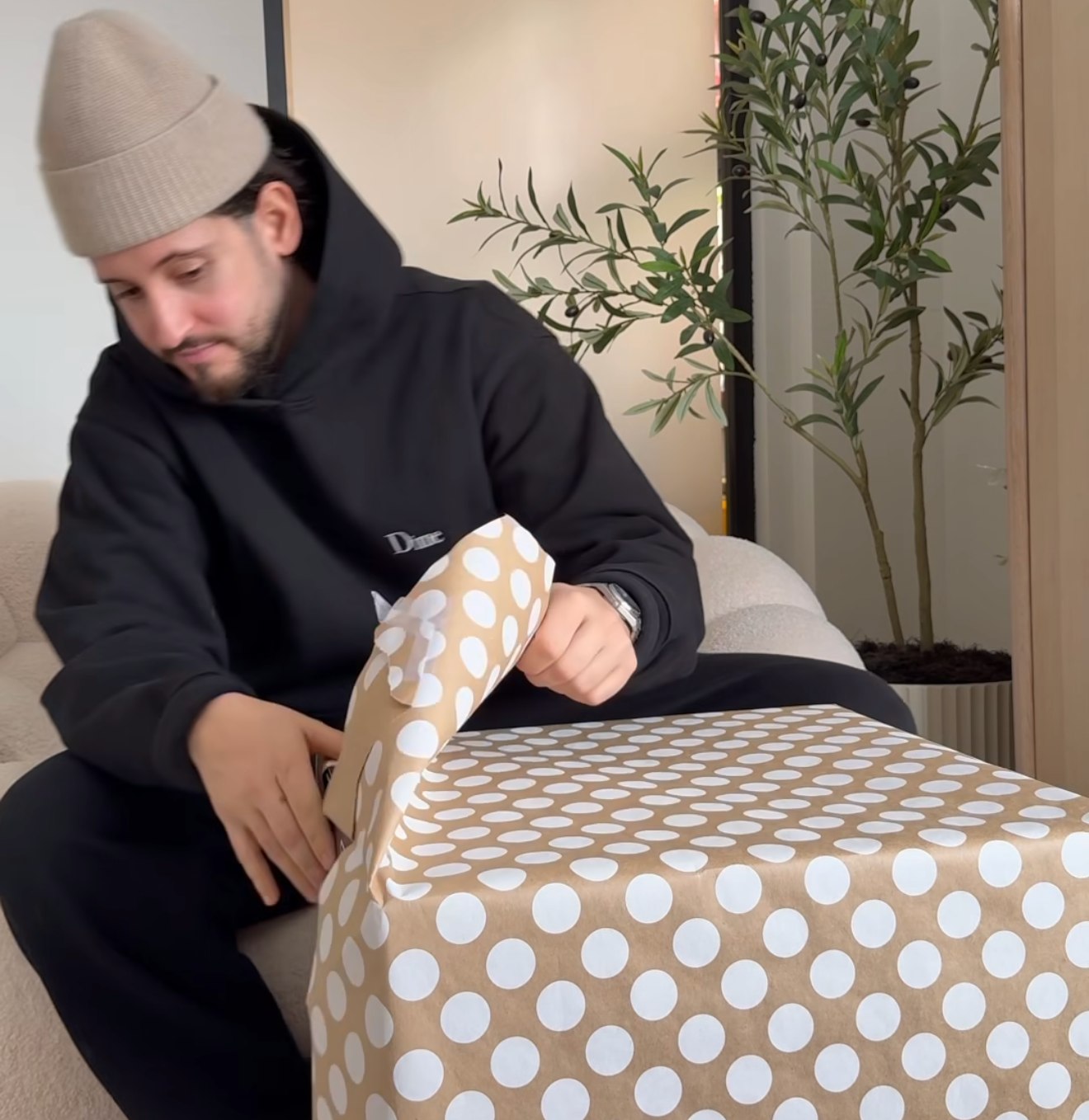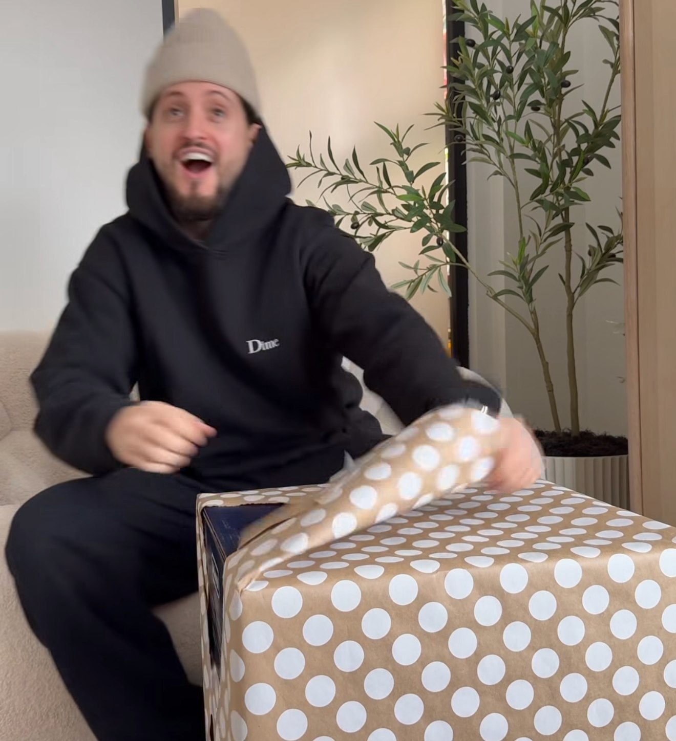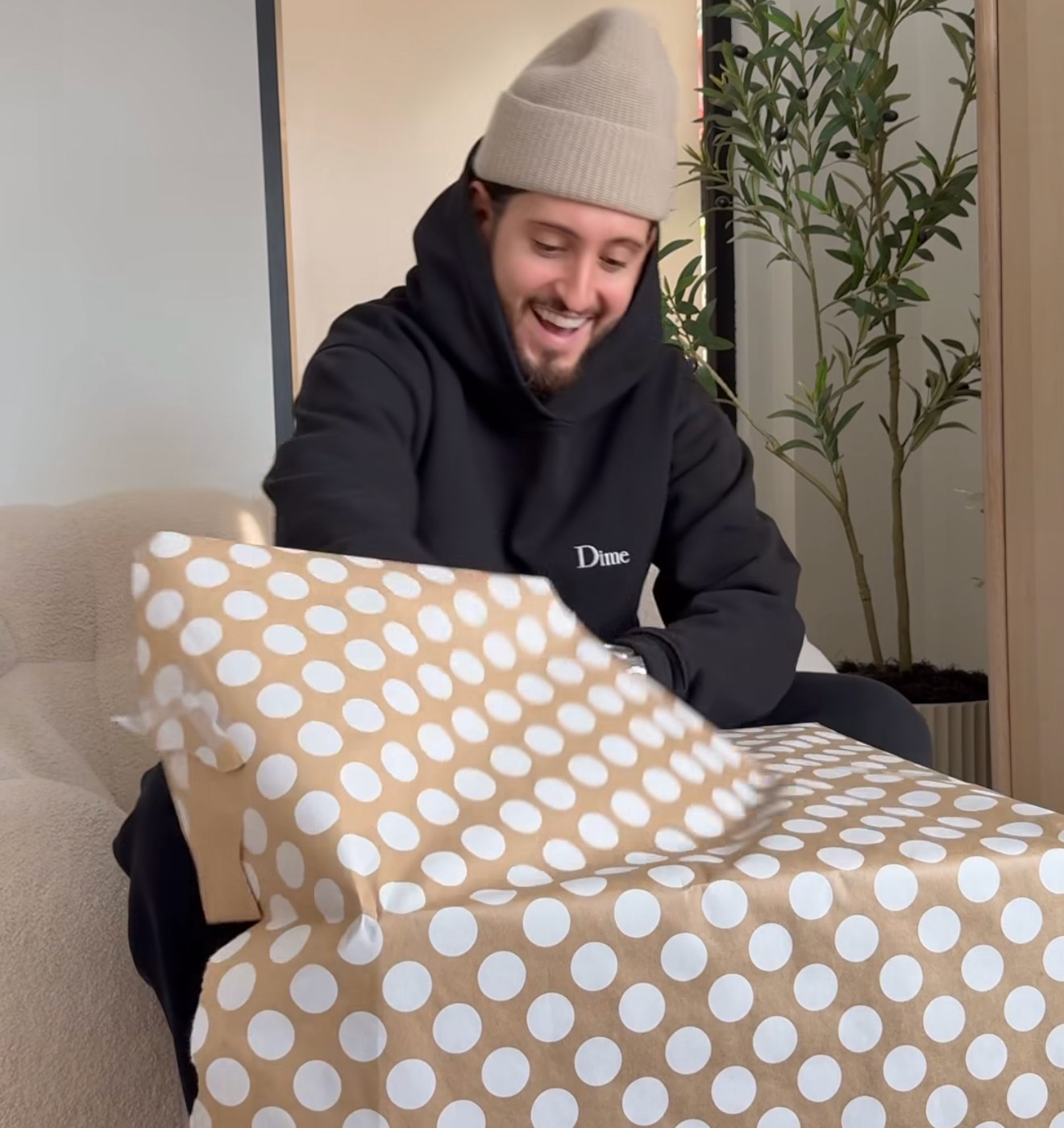 Voici toute la publication de Marina pour la fête de 31 ans de Lou-Pascal… On peut voir sa réaction quand il déballe sur l’image #2…
