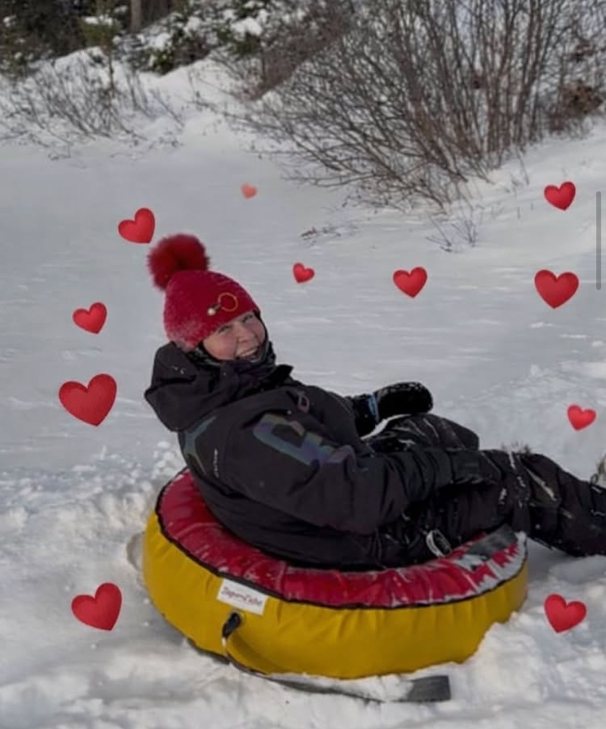 Nathalie Simard a profité de cette occasion pour publier une jolie photo sur laquelle on peut la voir dans une tripe de glisse. Elle a ornementé sa photographie de plusieurs cœurs.