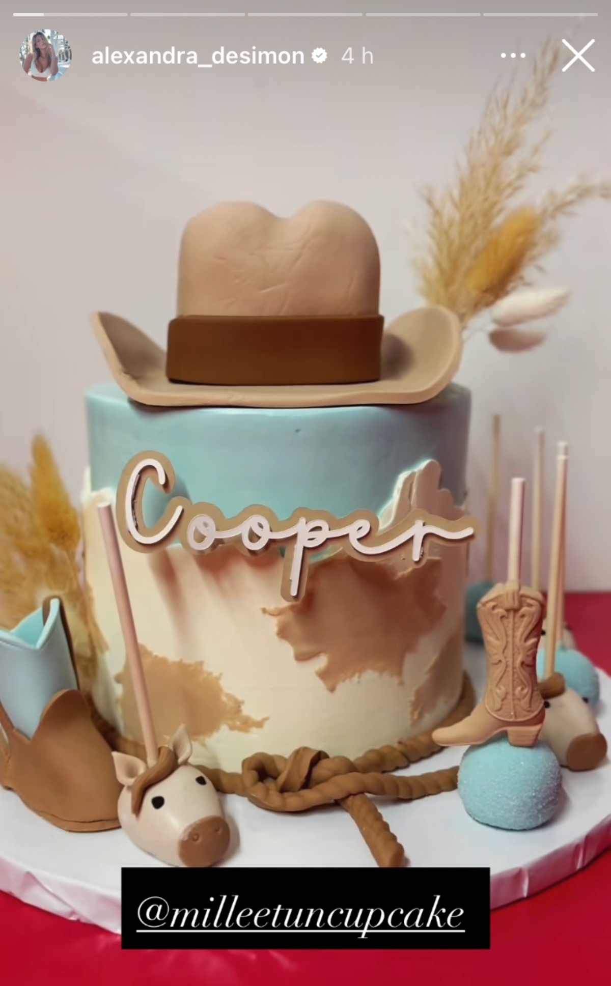 L’équipe a préparé un gâteau à la thématique de cowboys pour le fils de Mathieu Baron. En effet, on peut apercevoir plusieurs détails tels qu’une botte, un cheval et un chapeau sur la pâtisserie.
