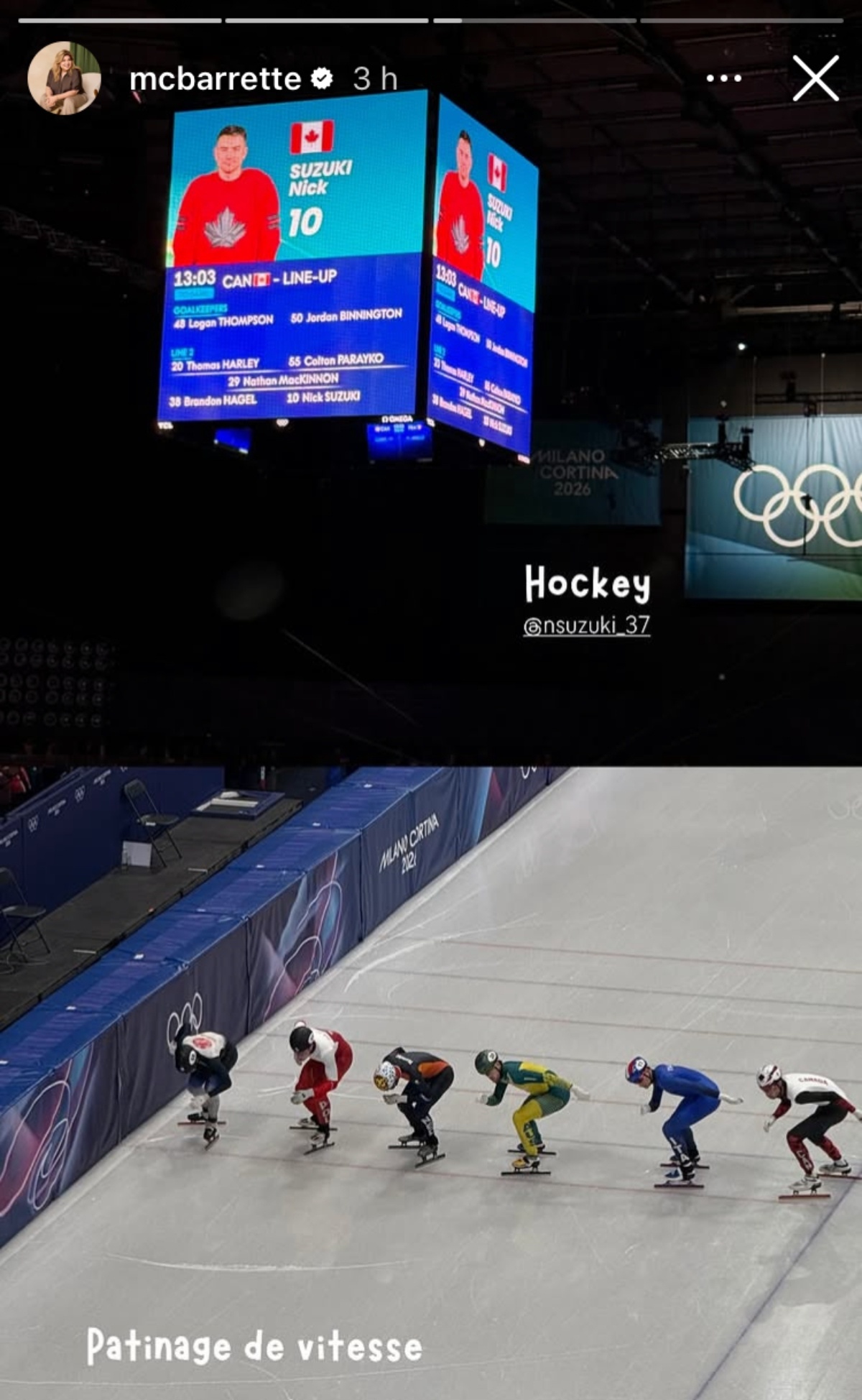 De même, elle a publié quelques moments des compétions. Elle a partagé des images du patinage de vitesse, d’un match de l’équipe canadienne masculine de hockey ainsi que du patinage artistique. D’ailleurs, les patineurs ont choisi une chanson de Jonathan Roy pour leur numéro.