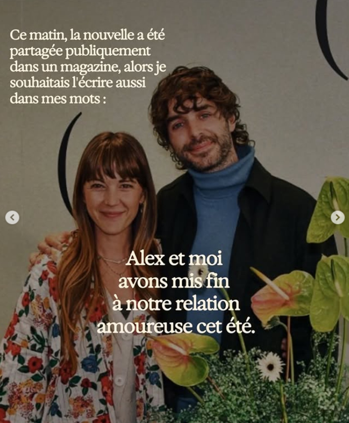 Ce matin, la nouvelle a été partagée publiquement dans un magazine, alors je souhaitas l’écrire aussi dans mes mots: Alex et moi avons mis fin à notre relation amoureuse cet été.