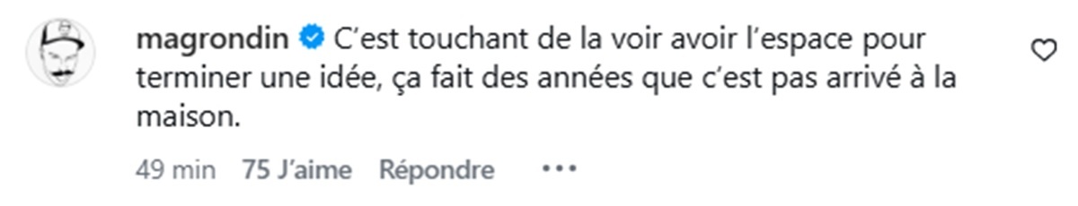 « C’est touchant de la voir avoir l’espace pour terminer une idée, ça fait des années que c’est pas arrivé à la maison. »
