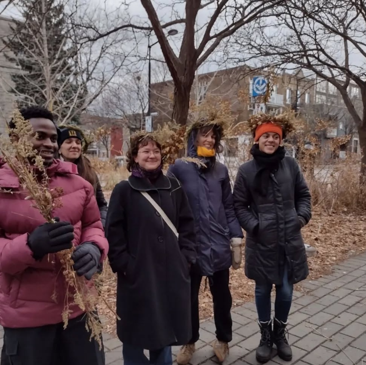 2Lula prend la pose avec ses amis et amies, dont un jeune homme qui tient une brindille: