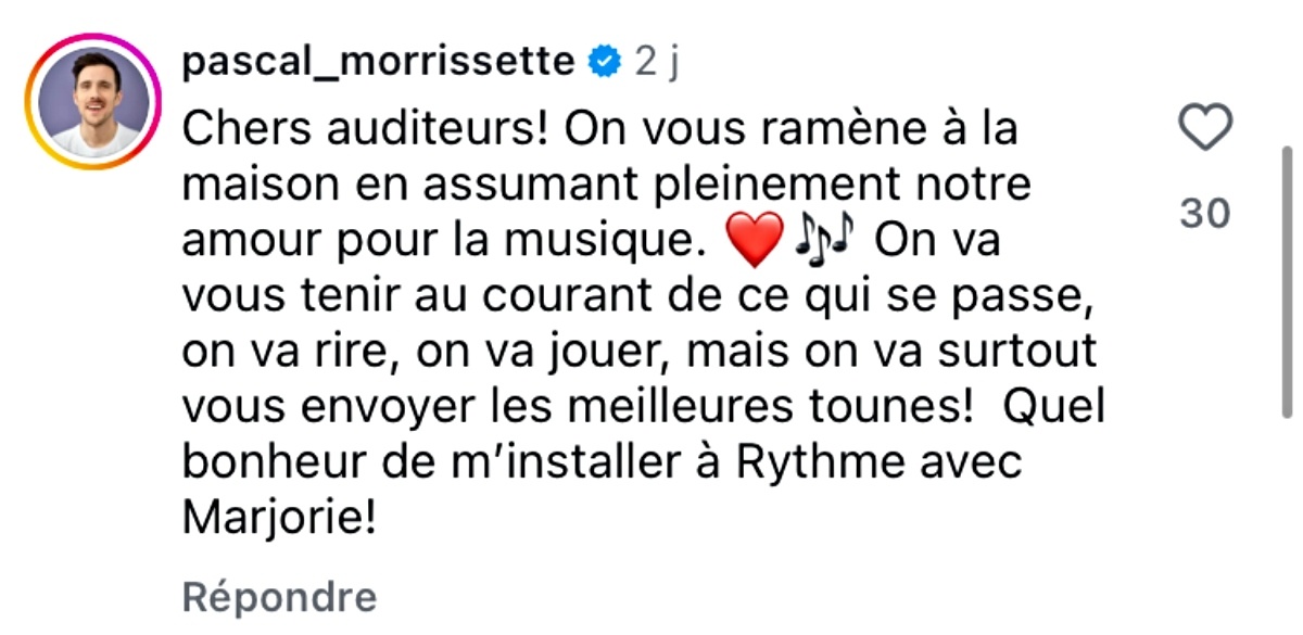 D’ailleurs, Pascal Morrissette n’a pas tardé à commenter la publication de Rythme FM. En effet, il a composé un petit message aux auditeurs.