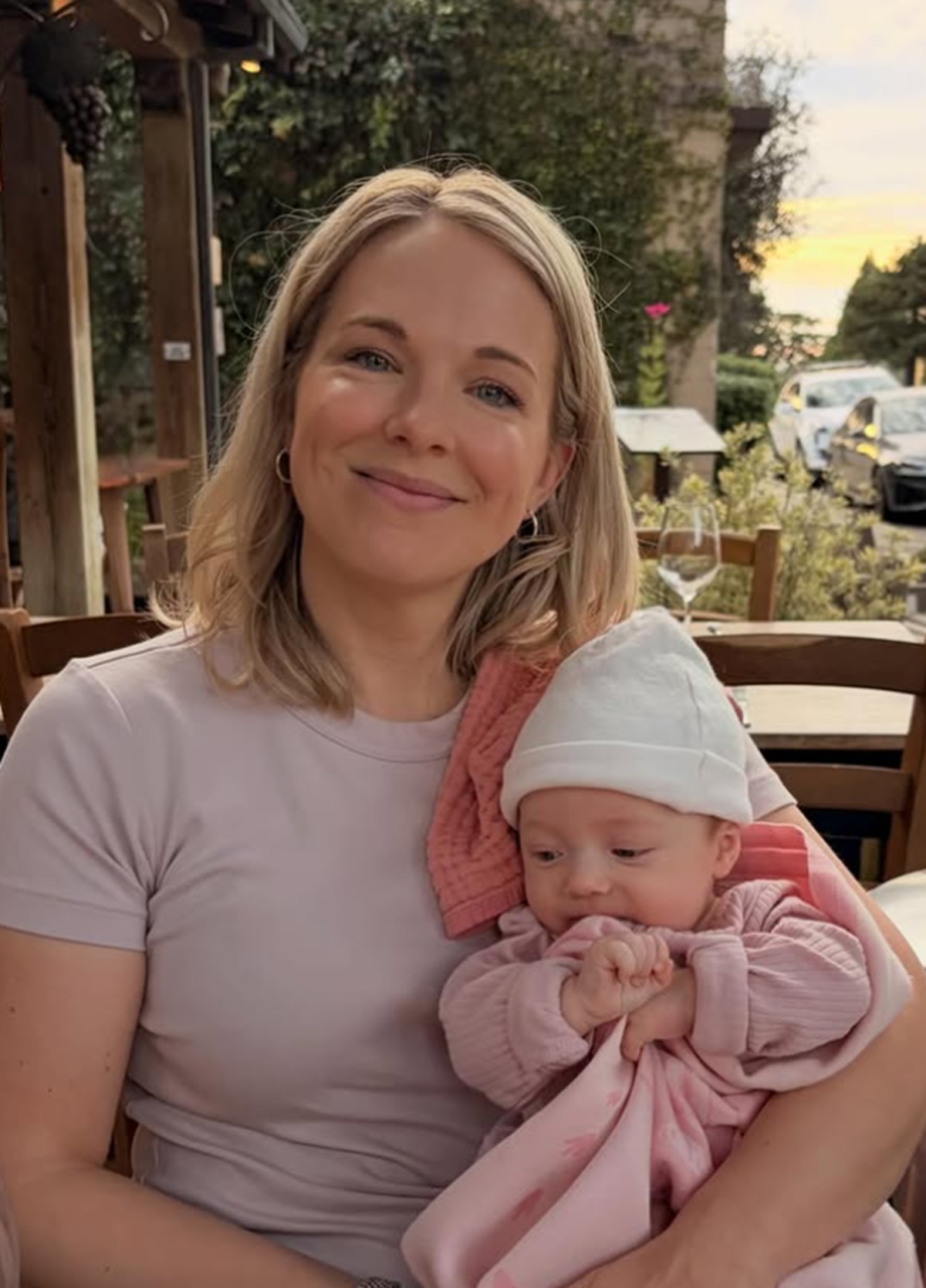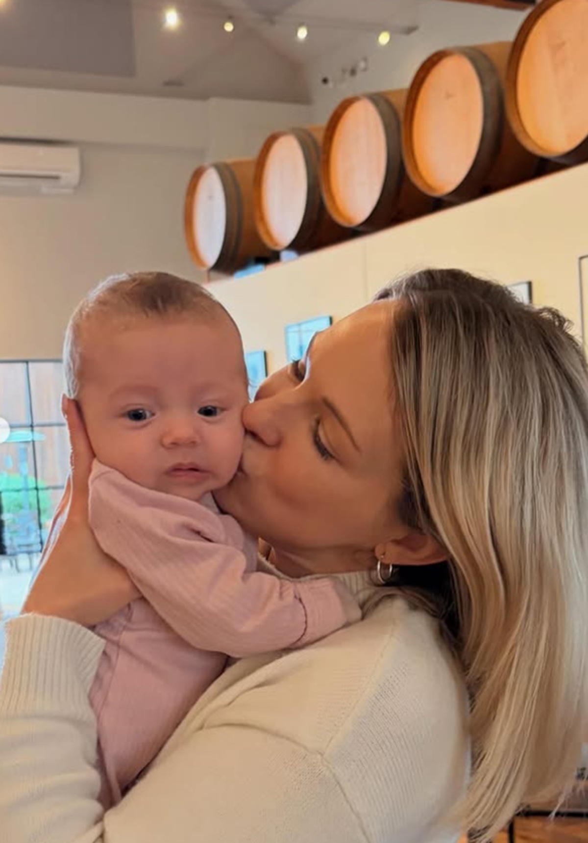 Frédérique donne un bisou à sa fille