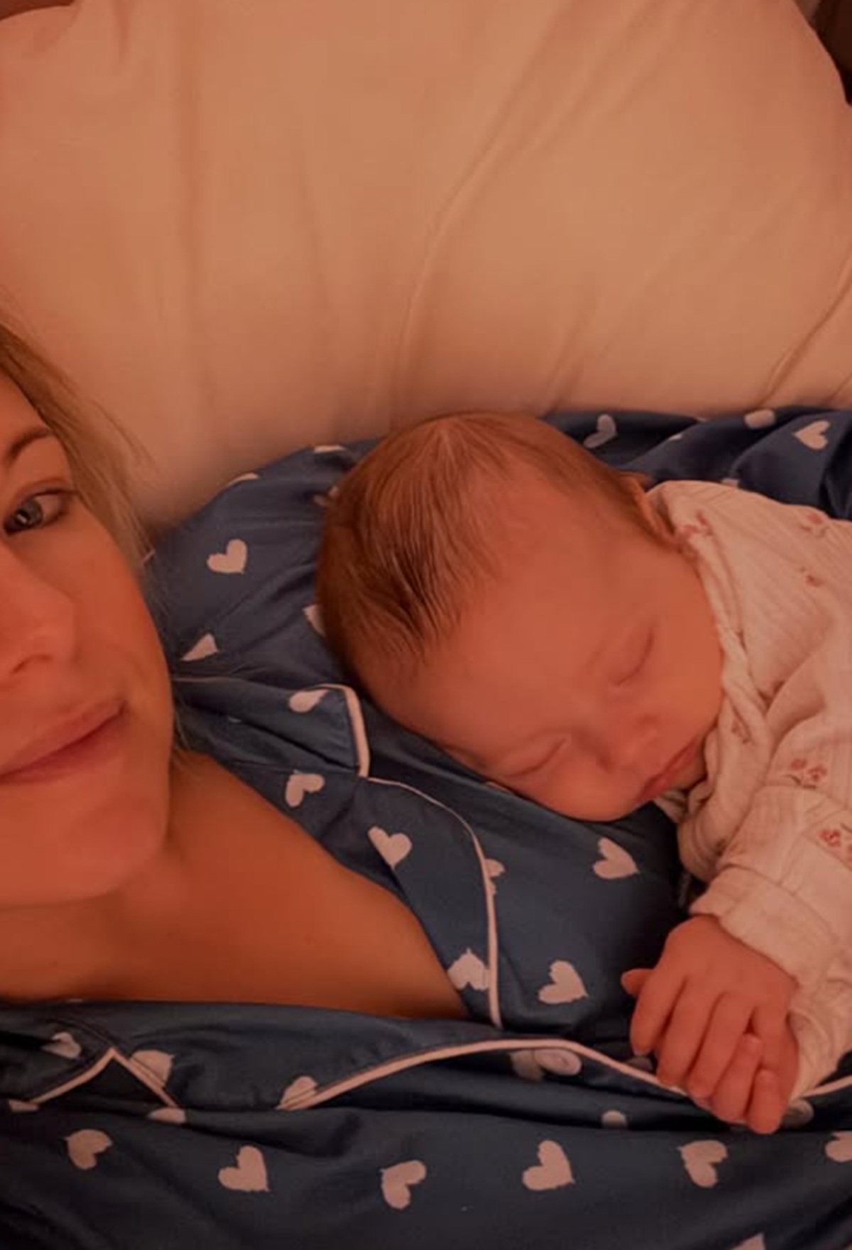 Frédérique couchée avec sa fille Samuelle