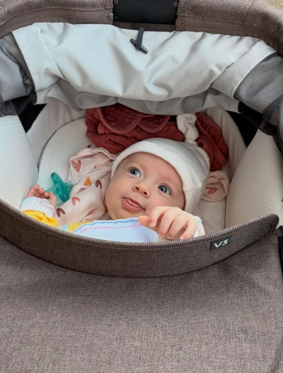 Samuelle bien couchée dans les bras de sa maman