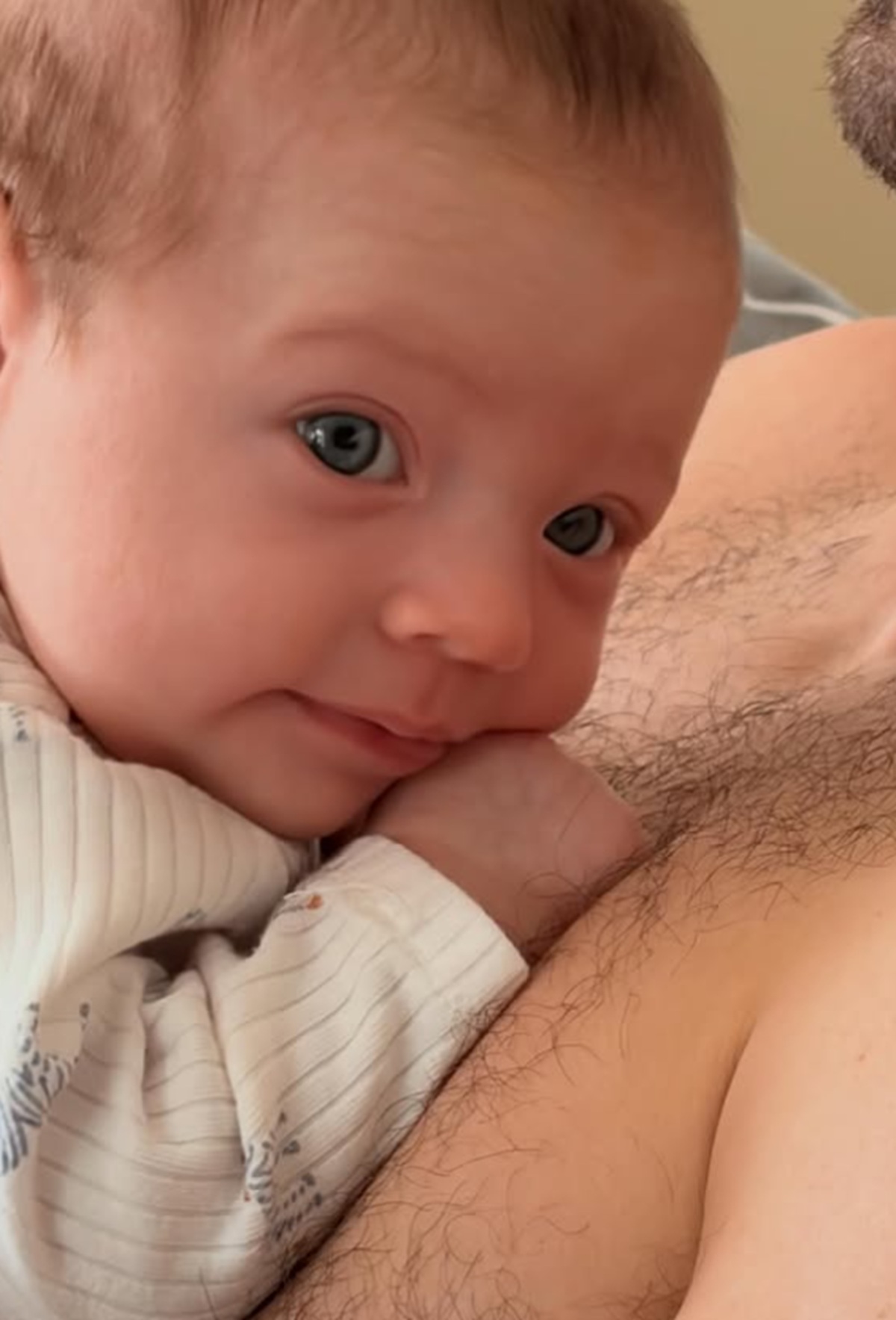 Samuelle couchée sur son papa
