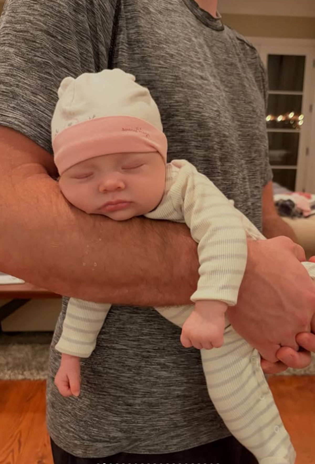 La petite Samuelle dort dans les bras de son papa