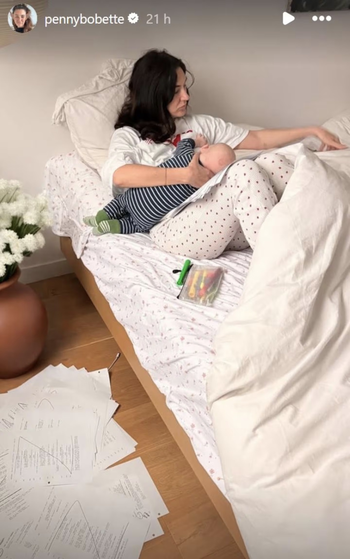 Quant à son amie Karine Gonthier-Hyndman, on rappelle qu’elle est récemment devenue maman. D’ailleurs, elle a publié un rare cliché avec son bébé, sur lequel on peut voir le petit en train de se nourrir alors que sa maman est confortablement installée sur son lit.