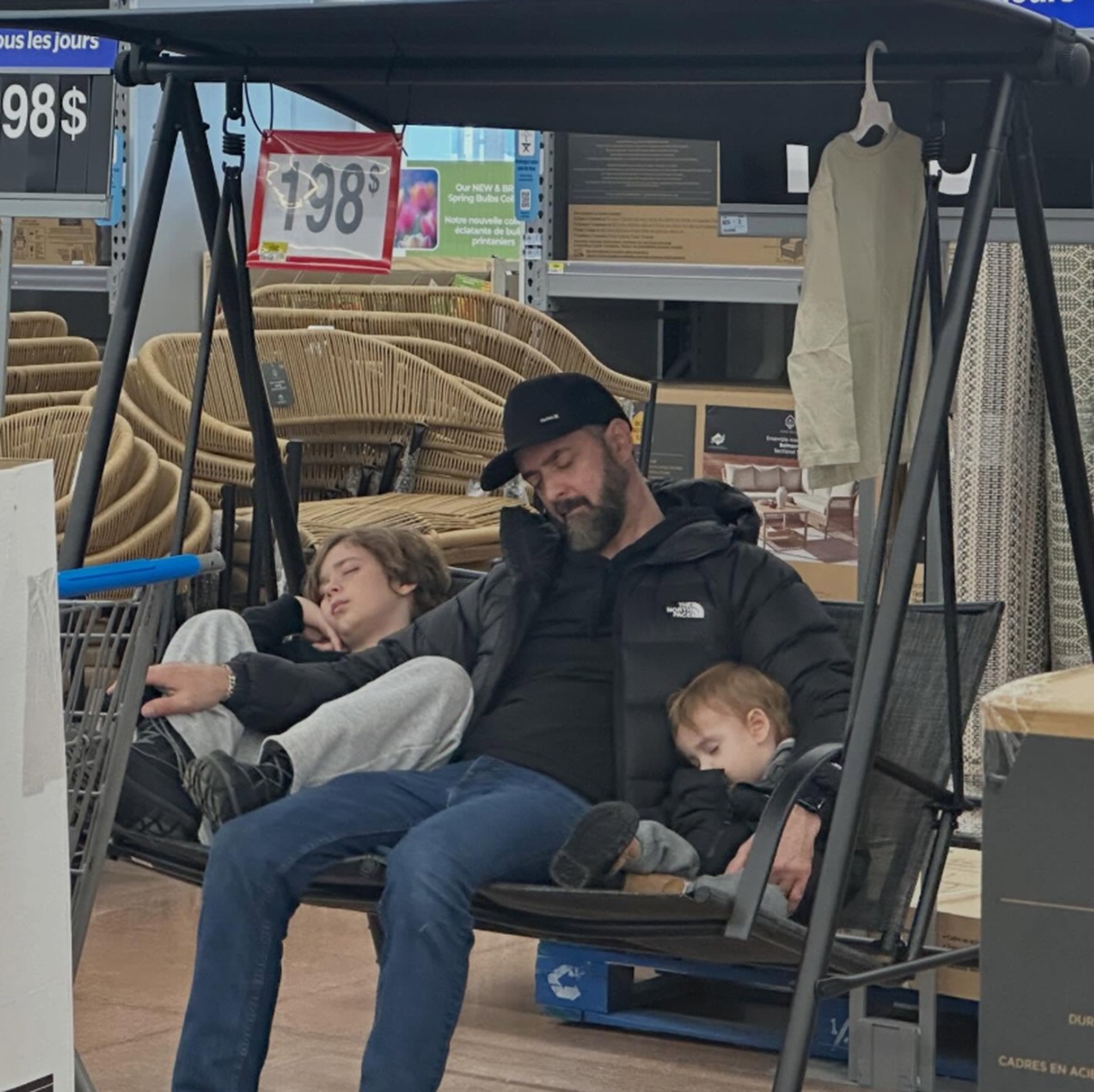 Le papa de la famille Groulx ainsi que deux de ses fils se sont endormis dans une balançoire installée sur le plancher du magasin.