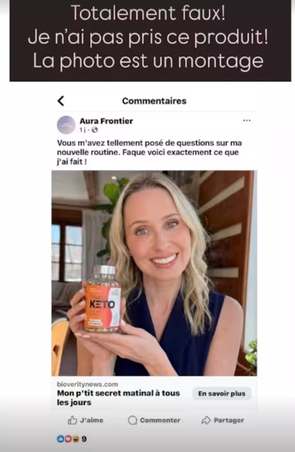 « Totalement faux! Je n’ai pas pris ce produit! La photo est un montage »