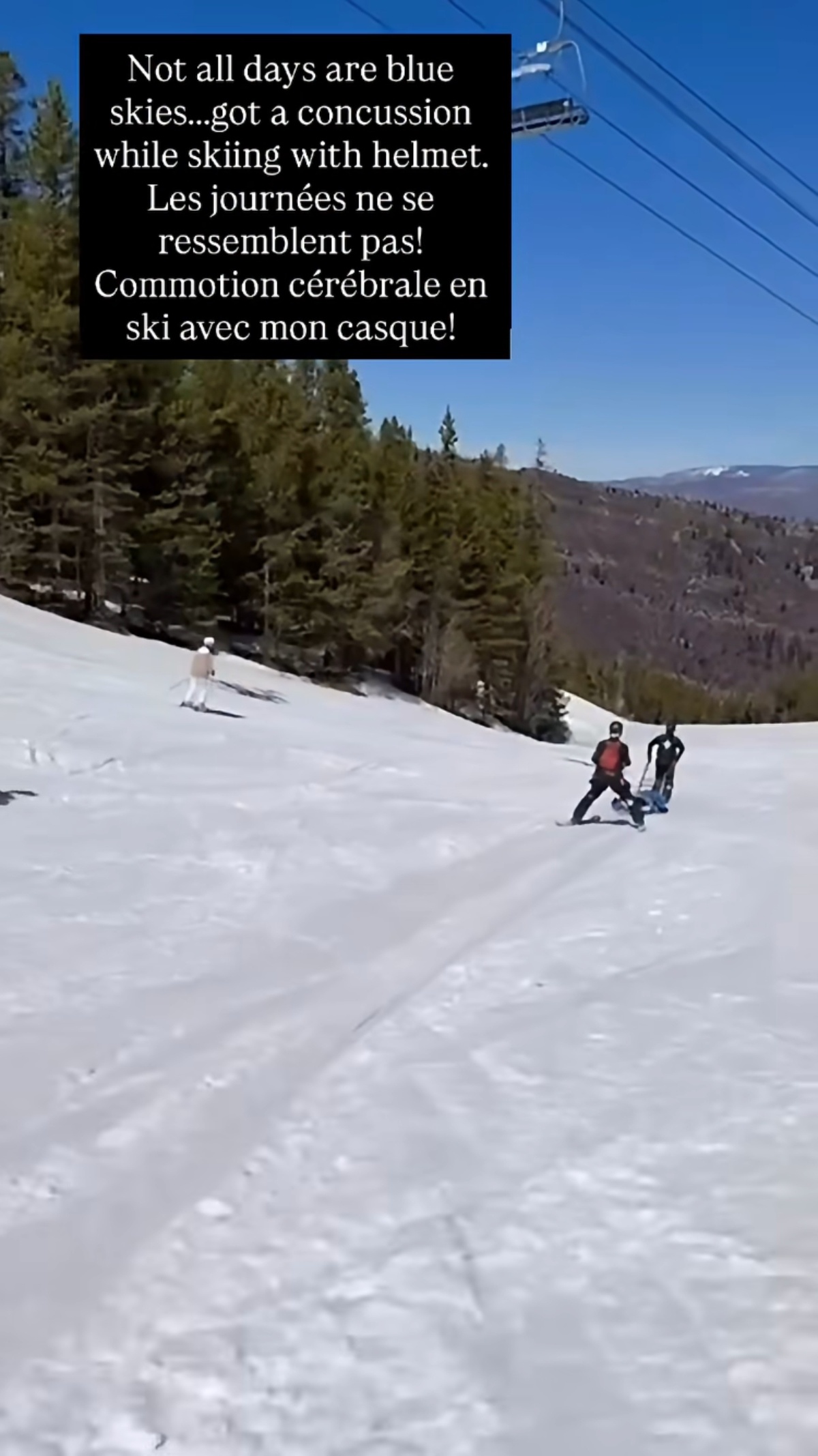 De plus, on peut également la voir sur une civière alors que l’équipe la descend de la pente de ski.