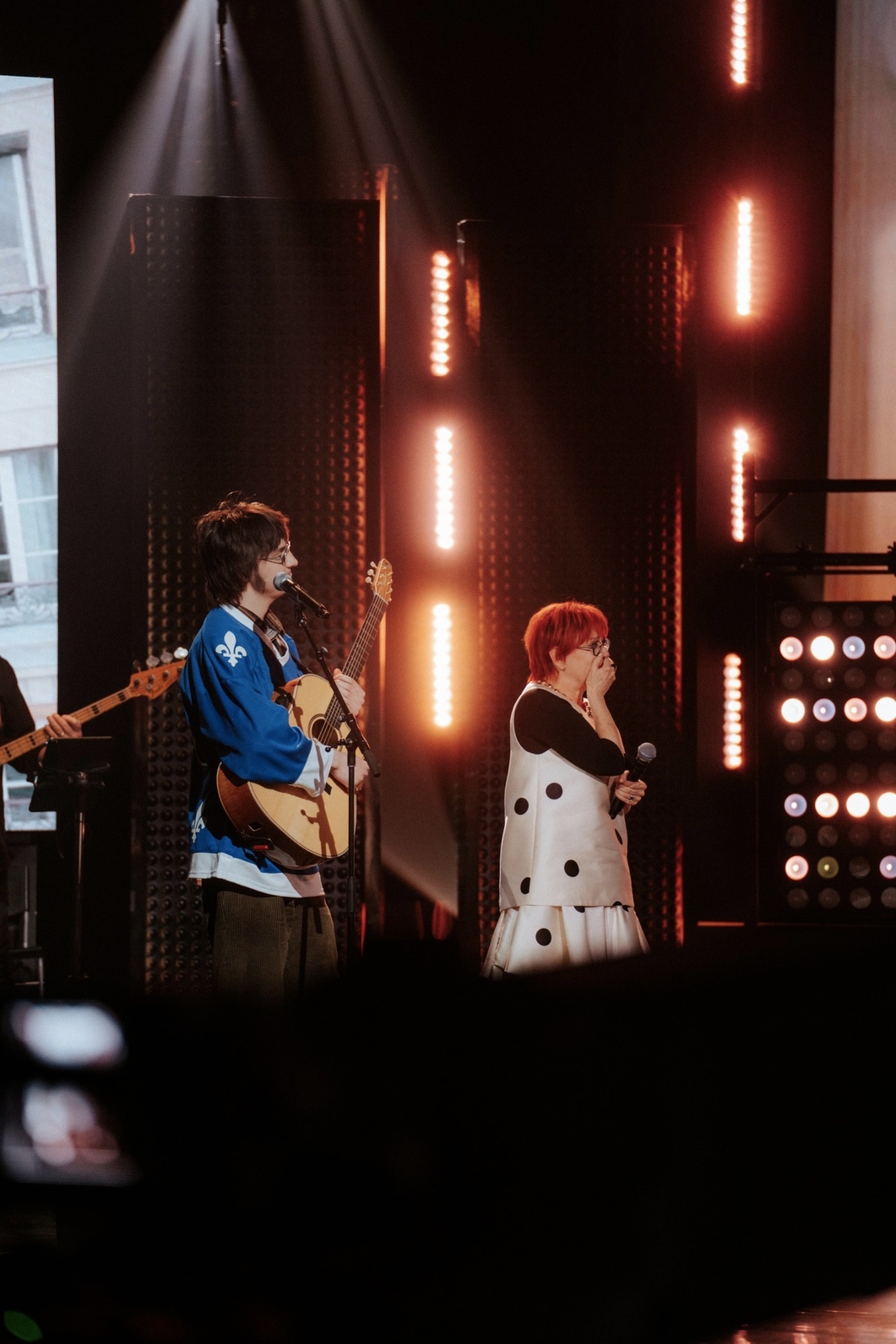 Chantal Lamarre est apparue sur scène avec une jolie robe à pois et elle était accompagnée de leur fils. Quant à leur fille, elle était à Paris.
