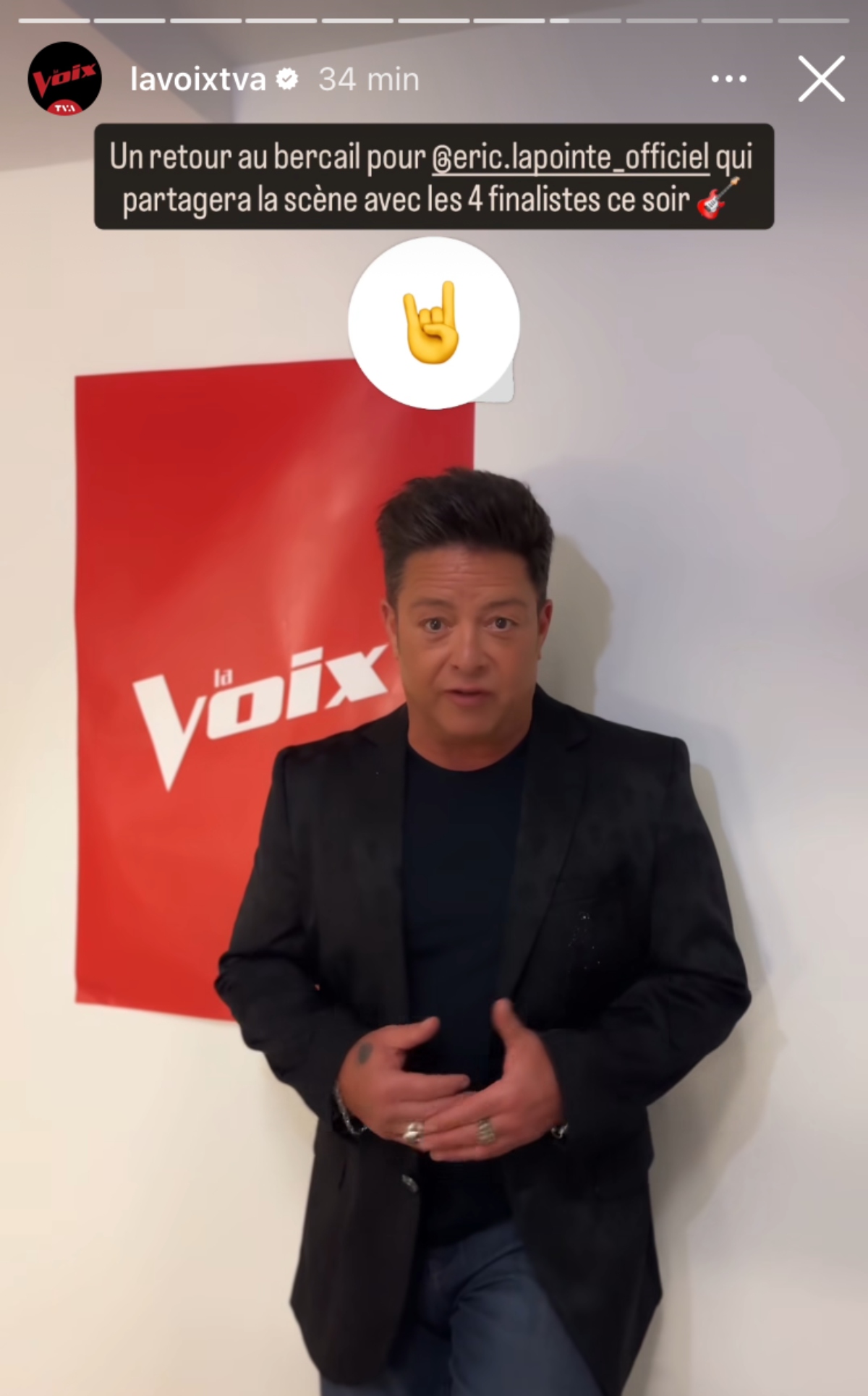« Un retour au bercail pour @ericlapointe_officiel qui partagera la scène avec les 4 finalistes ce soir »