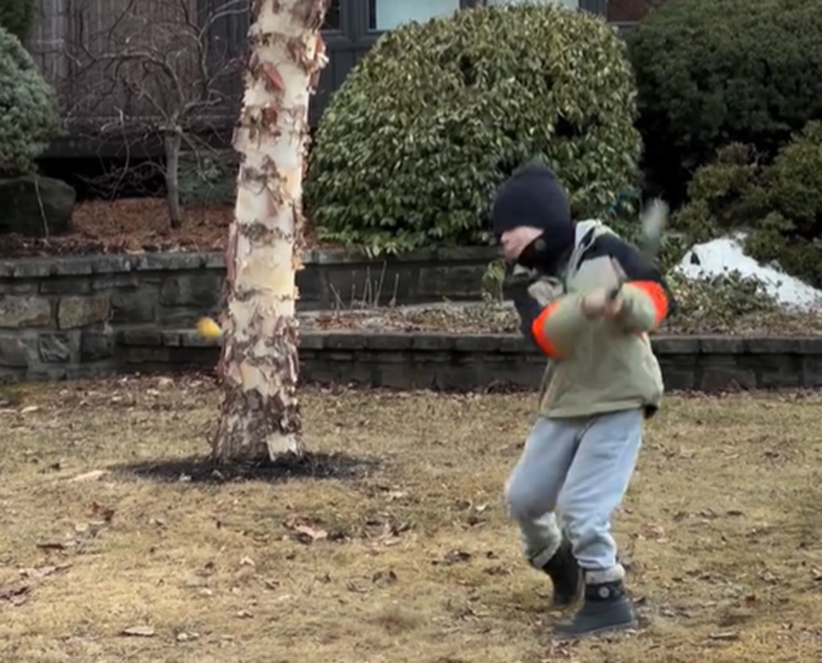 Arnaud a frappé une balle de golf au Québec en 2026 avant son père.