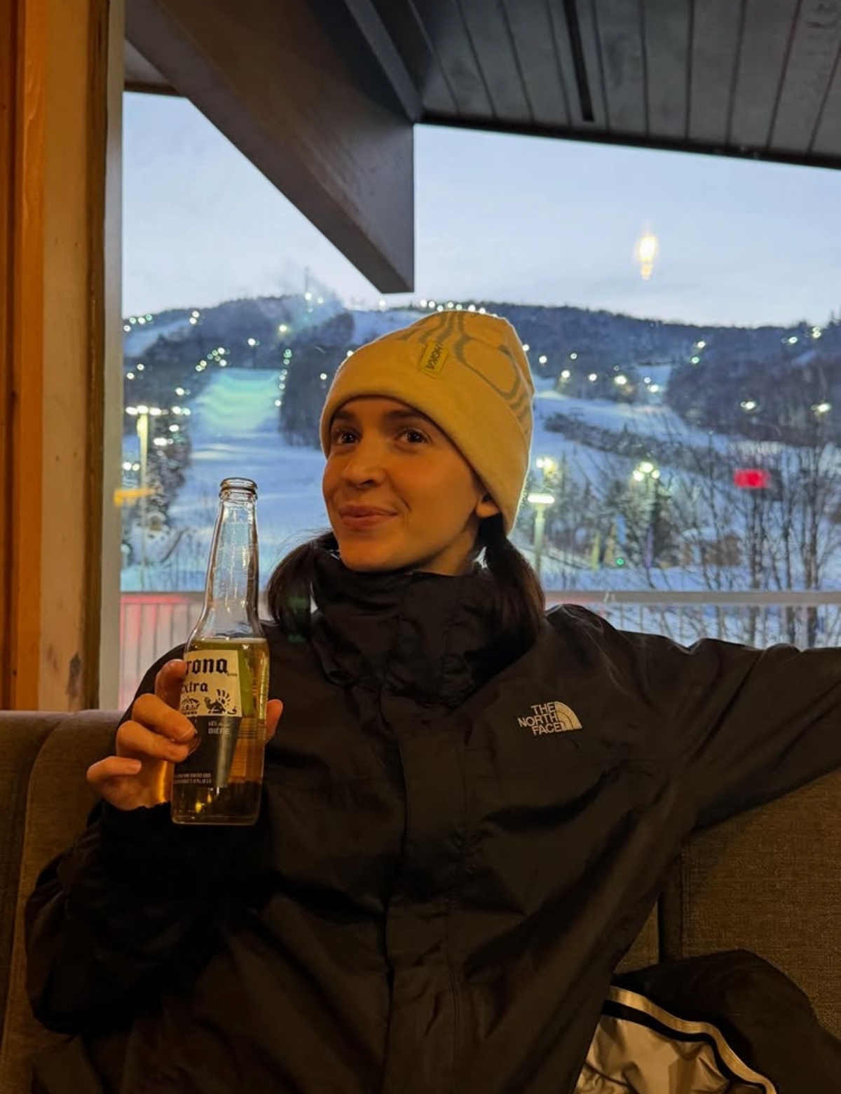6Lors d’une sortie hivernale… Léa Roy pose devant des pistes de ski