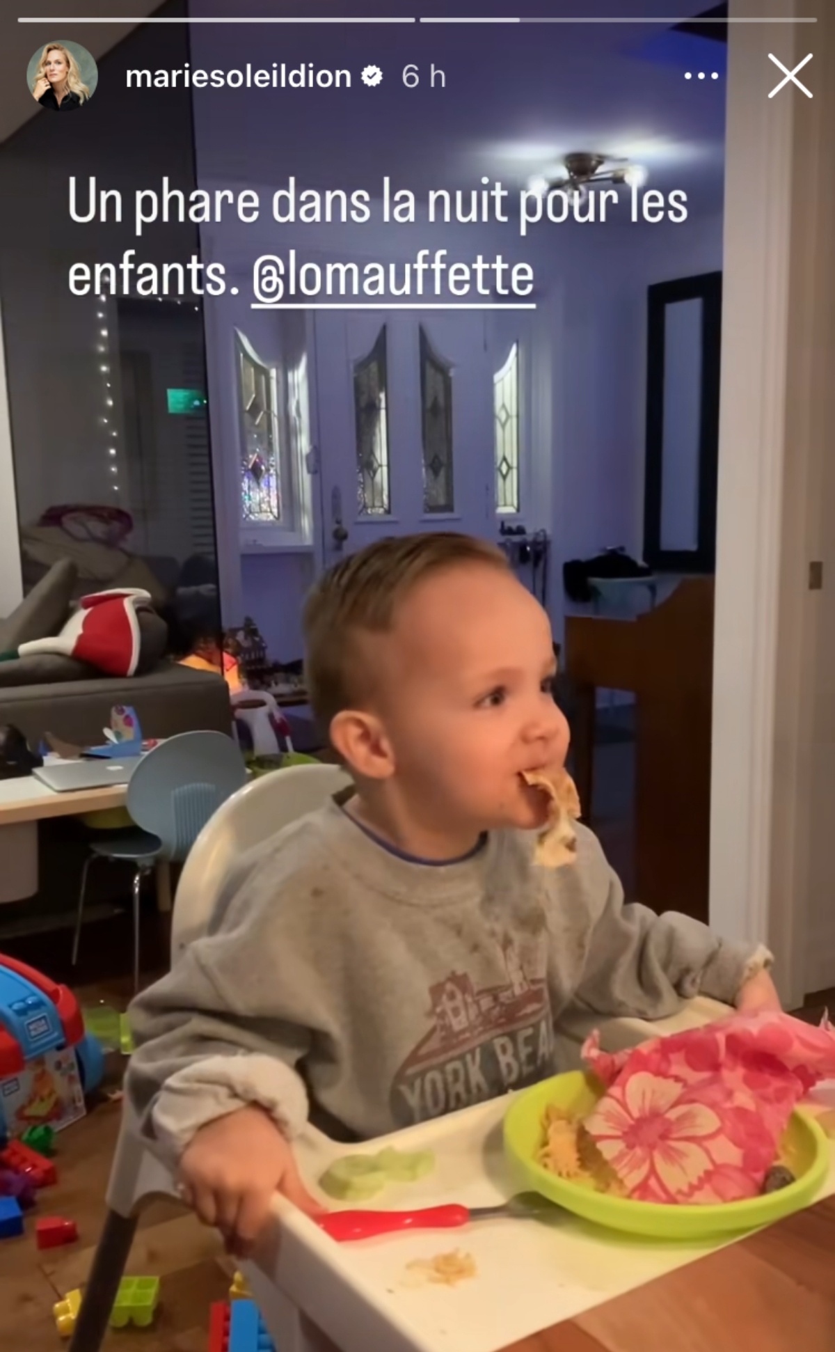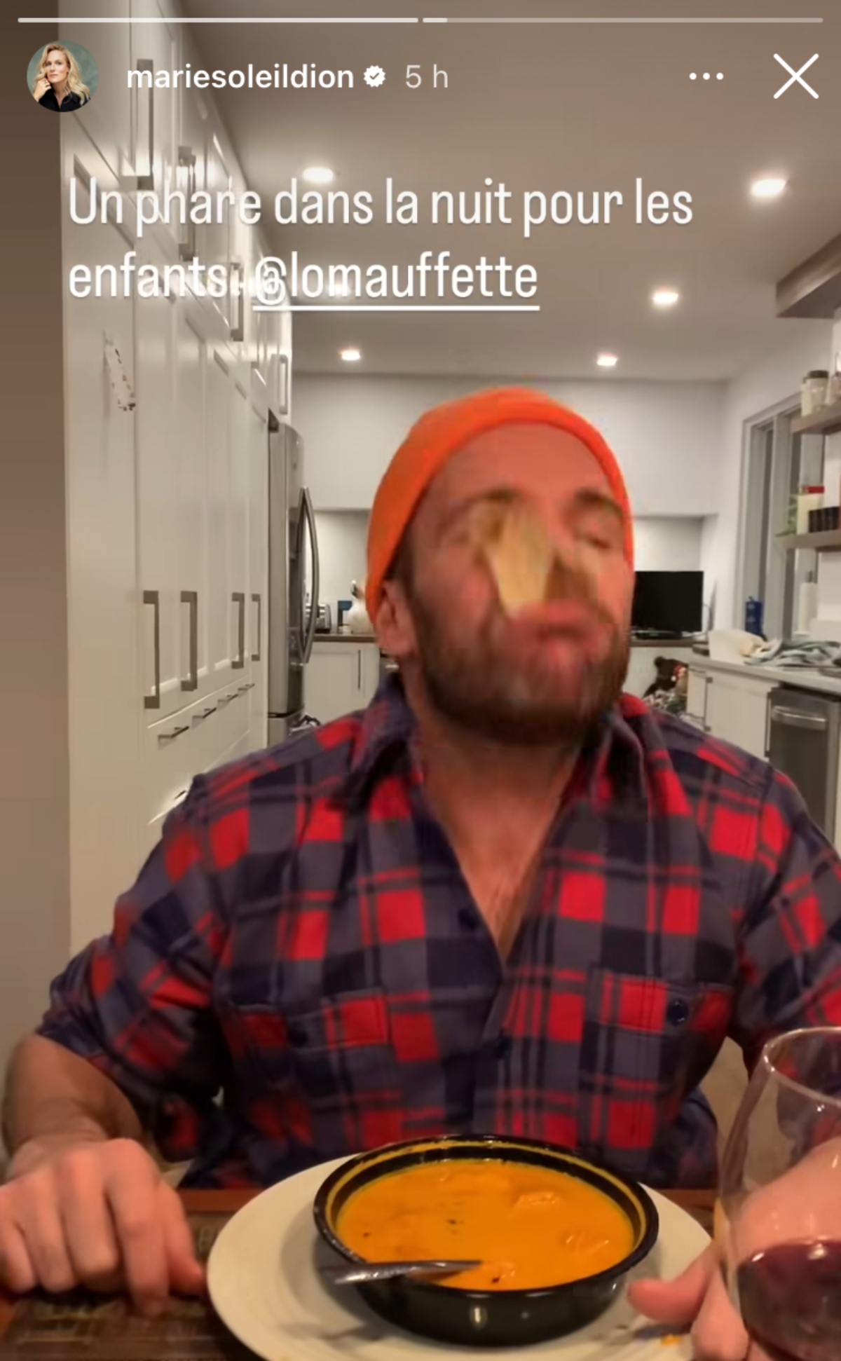 Dans une seconde publication, Marie-Soleil Dion a publié une vidéo du duo père et fils. Lous-Olivier Maufette amuse son garçon avec un morceau de pain dans la bouche.