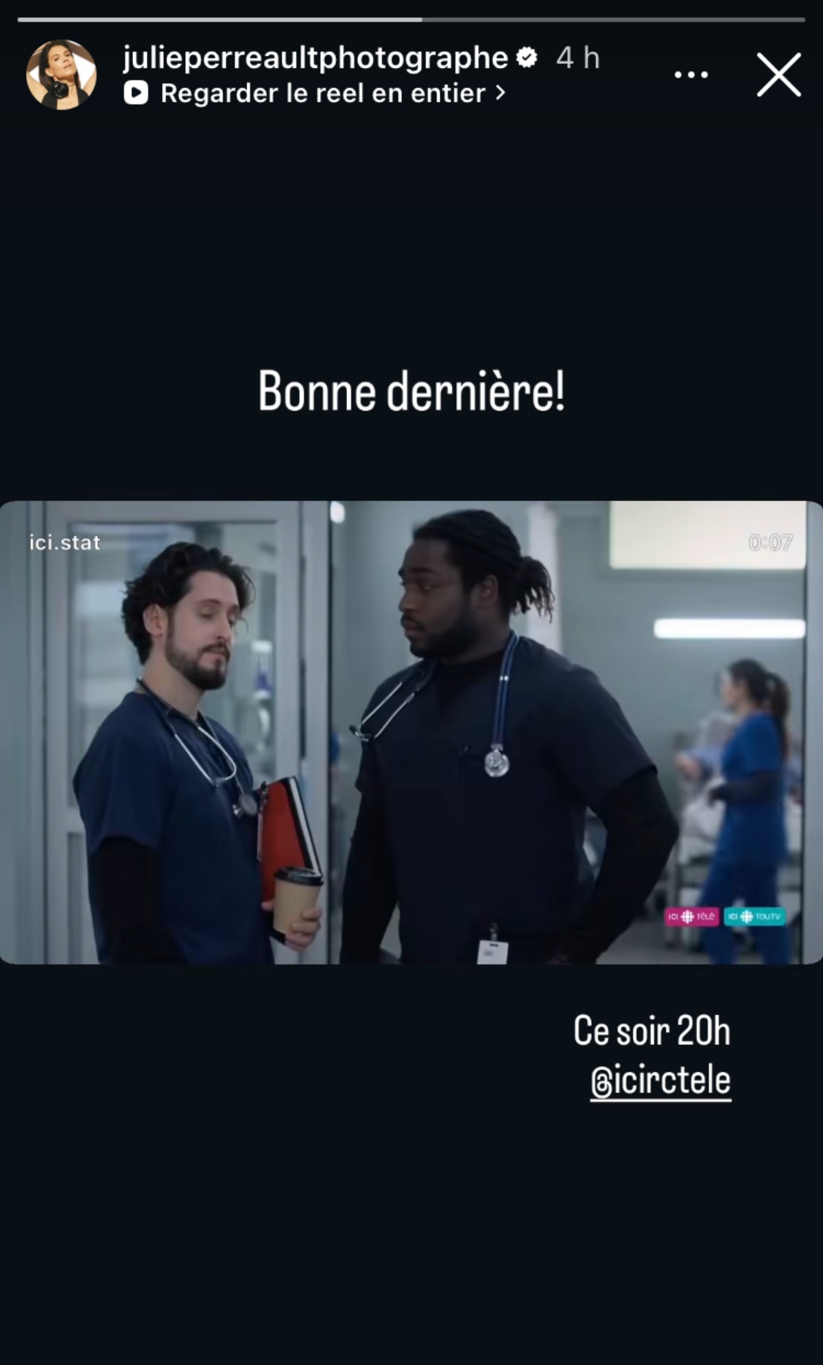 On rappelle que son personnage (l’urgentologue Emmanuelle St-Cyr) est en voyage humanitaire dans le nord du Canada.