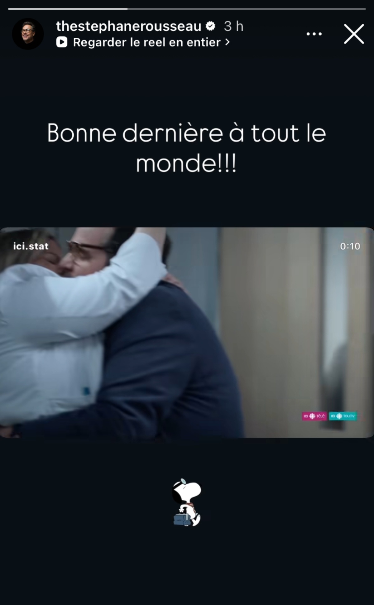 En ce qui concerne le message de Stéphane Rousseau, il a tout simplement souhaité une belle finale à sa communauté.