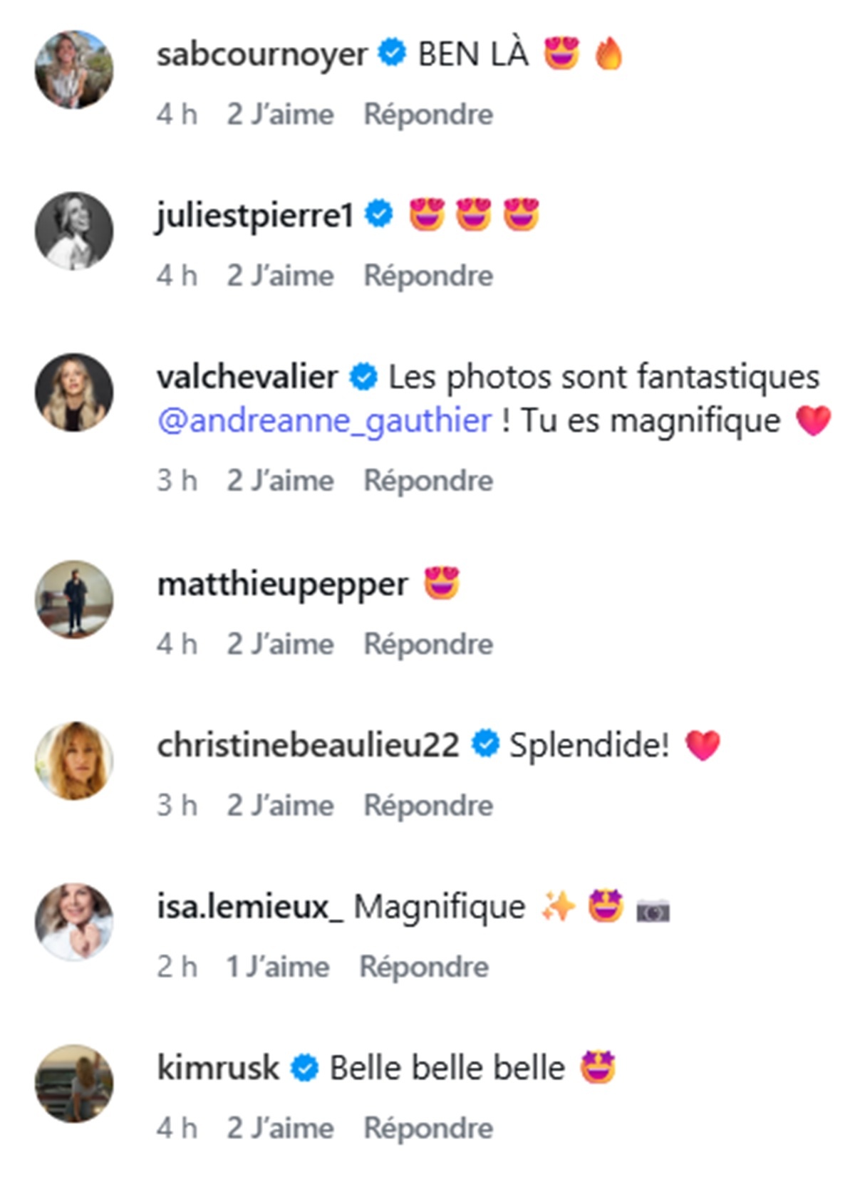 Sabrina Cournoyer, Julie St-Pierre, Valérie Chevalier et Christine Beaulieu, Kim Rusk, Isabelle Racicot, Varda Étienne et Lou-Pascal Tremblay ont tous commenté la publication de Julie Perreault.