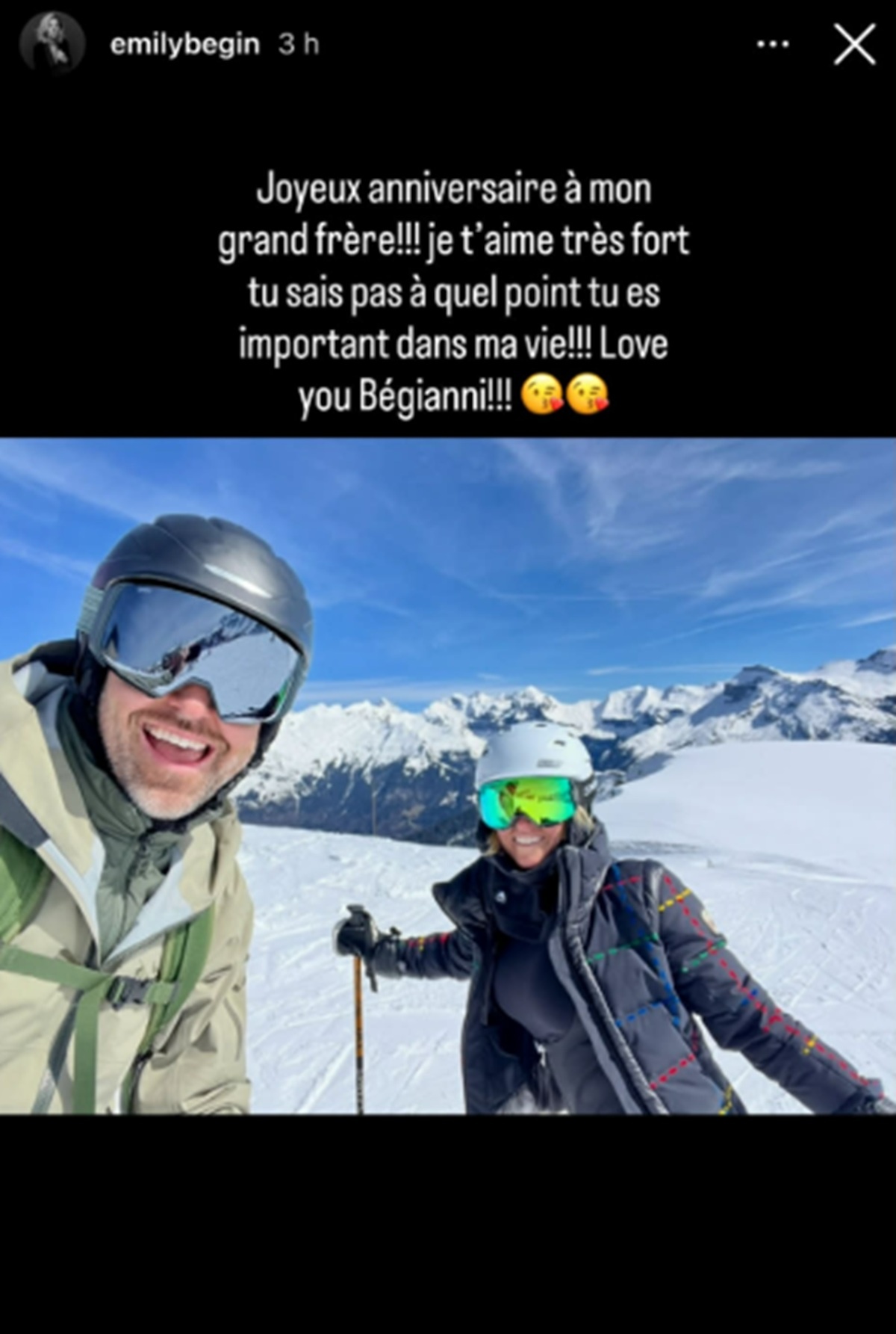 « Joyeux anniversaire à mon grand frère!!! Je t’aime très fort tu sais pas à quel point tu es important dans ma vie!!! Love you Bégianni!!! »