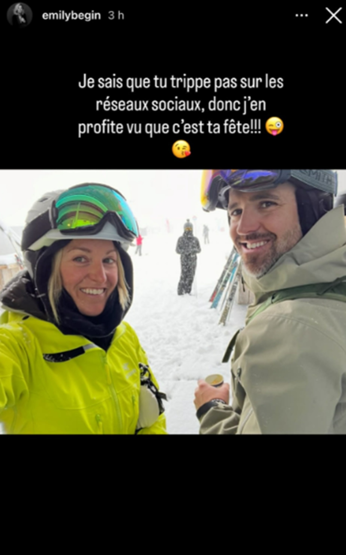 « Je sais que tu trippe pas sur les réseaux sociaux, donc j’en profite vu que c’est ta fête!!! »