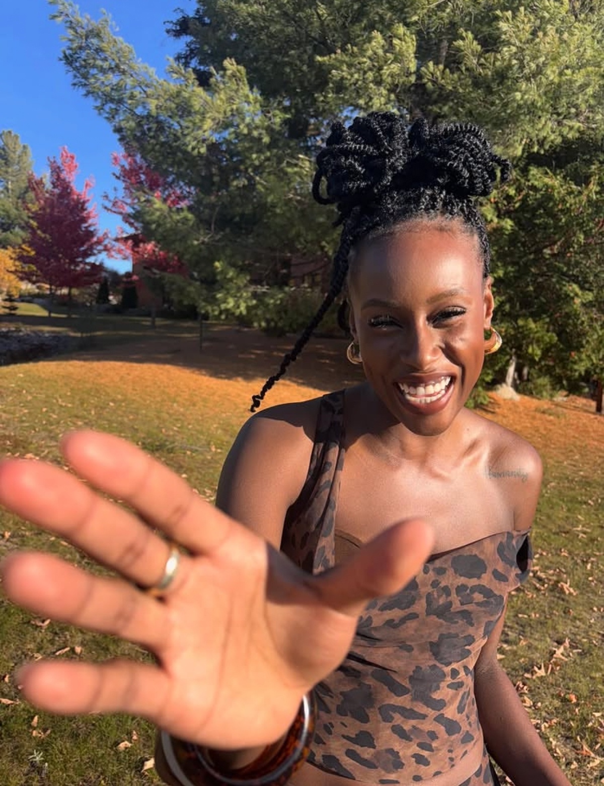 8L’actrice dans un joli ensemble à motifs léopard