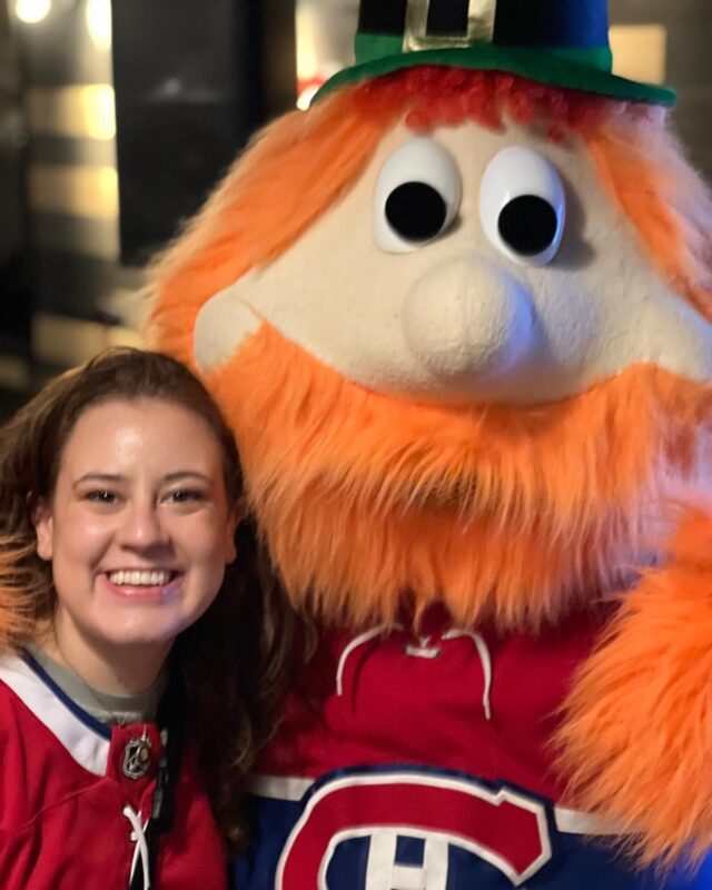 5L’humoriste a l’air contente de prendre une photo avec la célèbre mascotte Youpi!