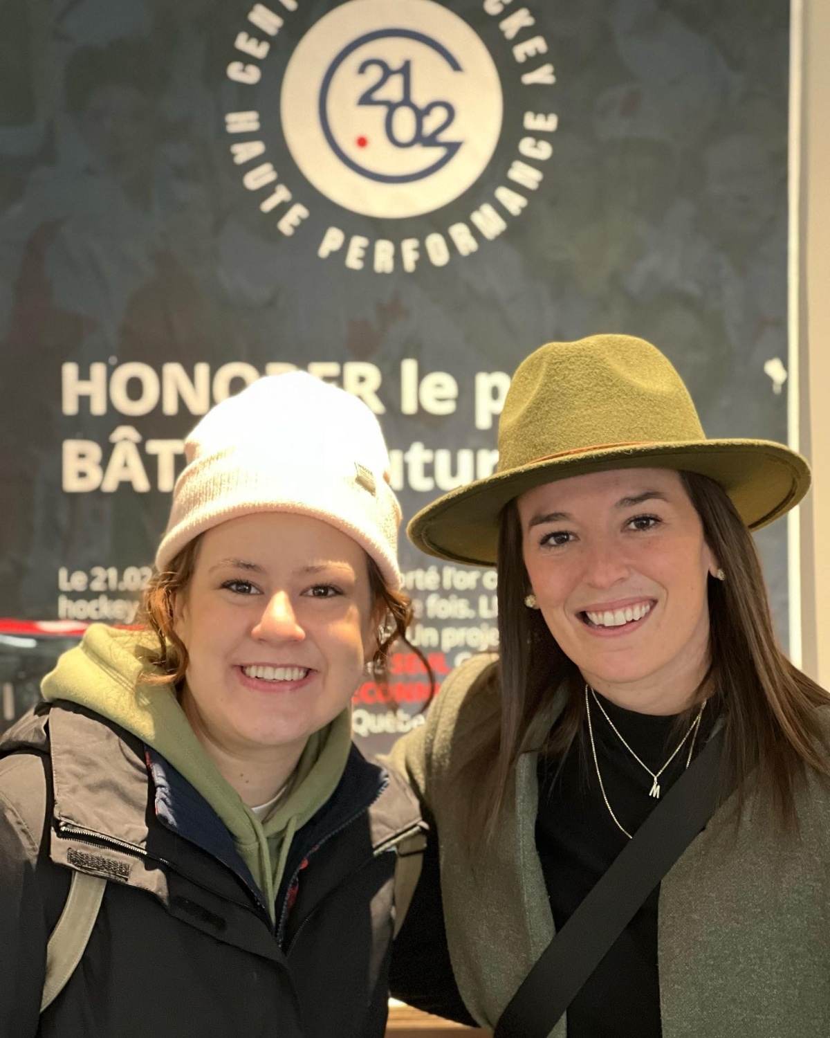 8Ici, Mégan pose aux côtés de Mélodie Daoust, une joueuse de hockey canadienne jouant dans la ligue élite féminine.