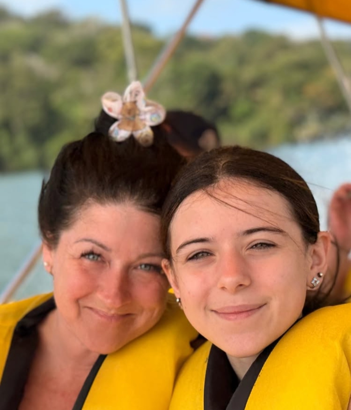 On peut voir le duo mère et fille qui portent des vestes de flottaison jaunes… Et elles se ressemblent vraiment!