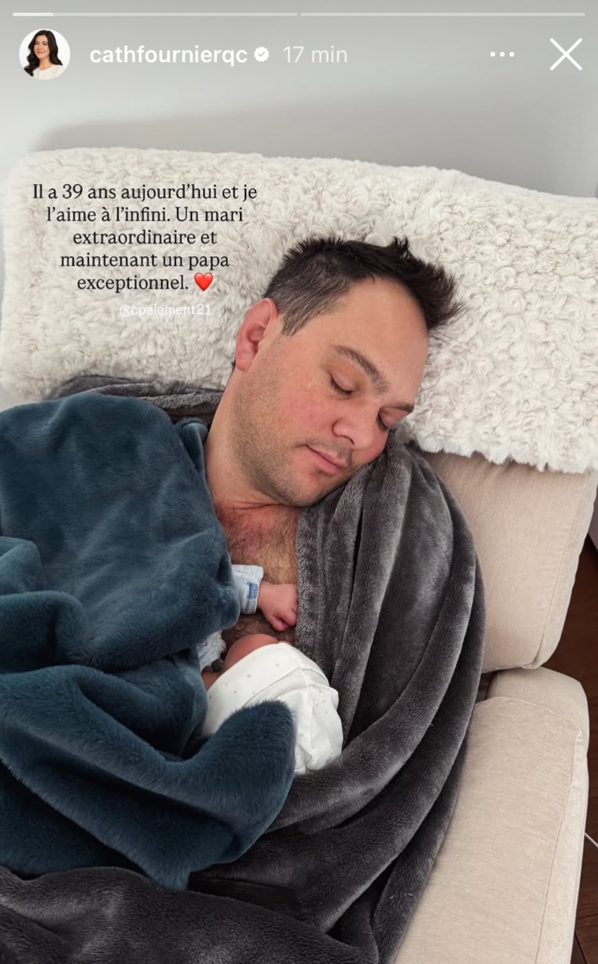 « Il a 39 ans aujourd’hui et je l’aime à l’infini. Un mari extraordinaire et maintenant un papa exceptionnel. »