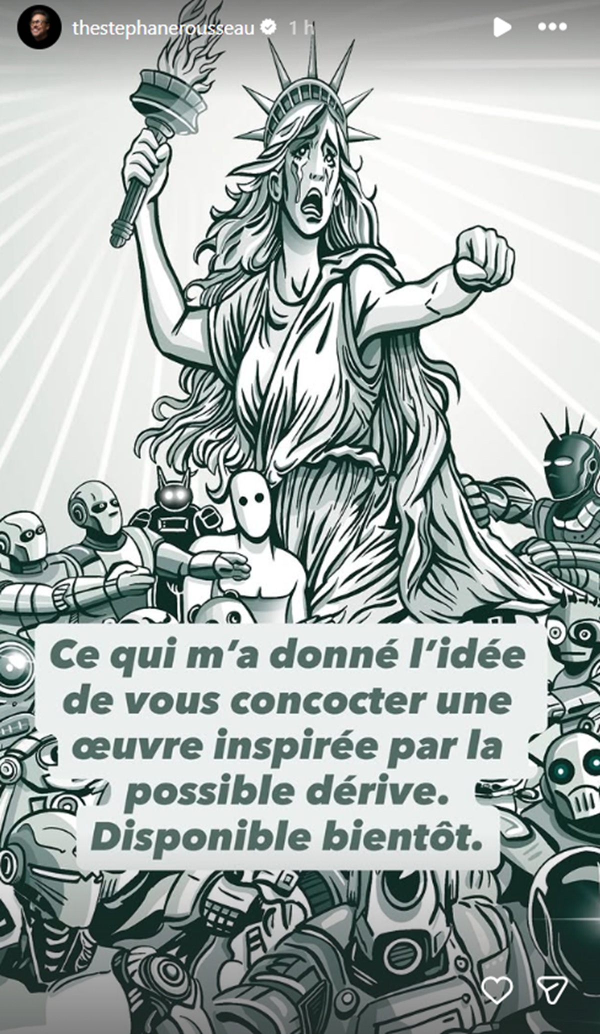 « Ce qui m’a donné l’idée de vous concocter une œuvre inspirée par la possible dérive. Bientôt disponible. »