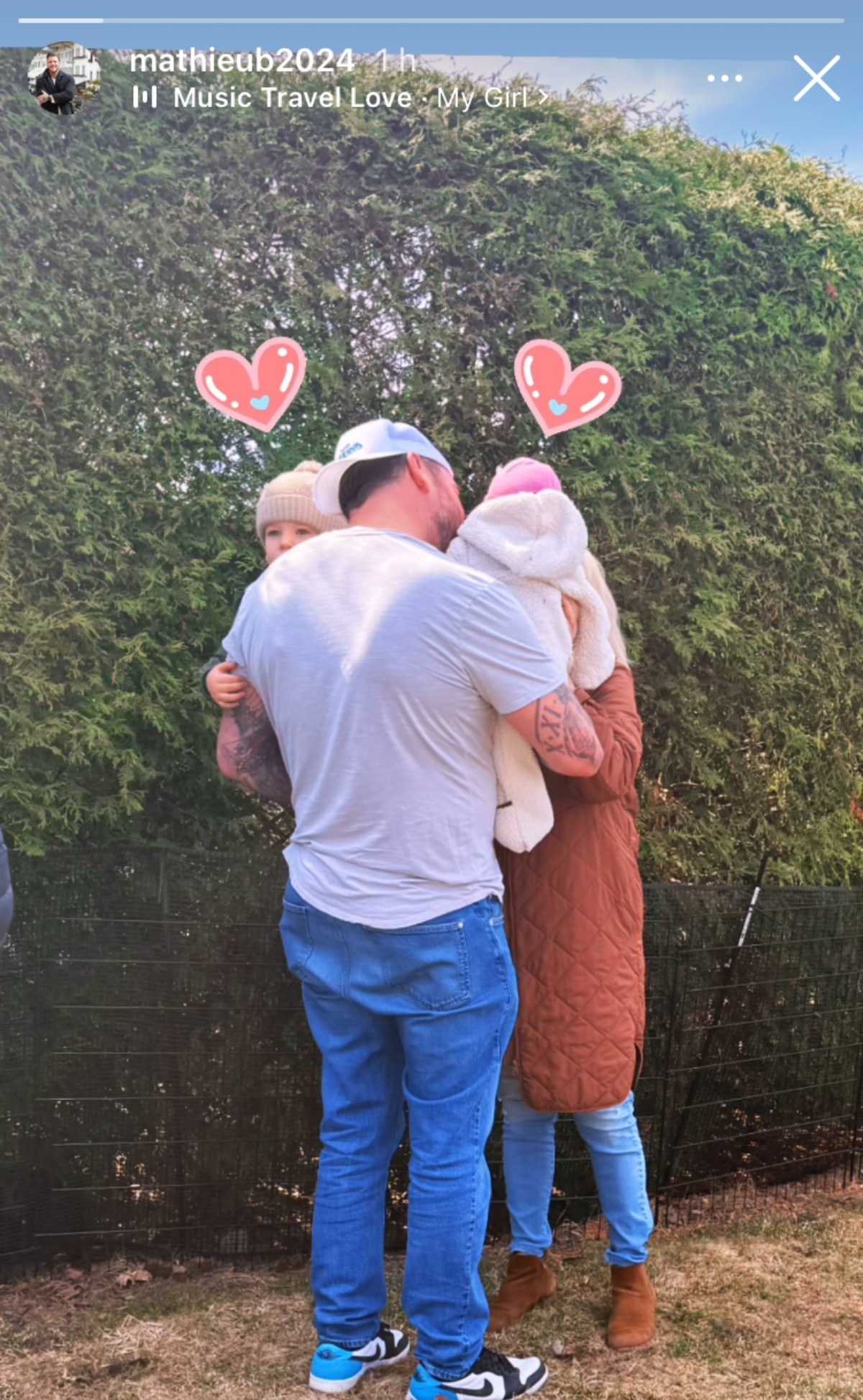 On peut également voir une mystérieuse femme sur le cliché. Toutefois, son visage est caché par la fille du comédien. Notons également que Mathieu Baron a ajouté deux cœurs sur la photographie en question, ce qui semble indiquer qu’il s’agit bel et bien de son amoureuse.