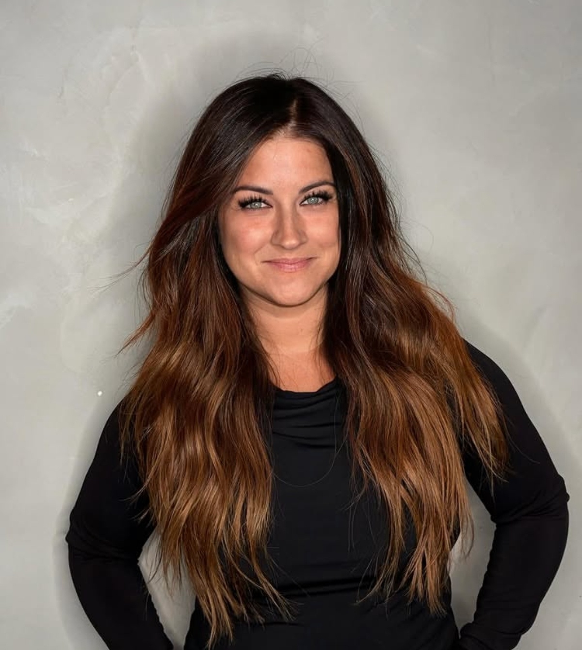 Pour les saisons plus chaudes, elle a éclairci ses pointes. En effet, sa base est de couleur chocolat, alors que ses longueurs sont maintenant caramel.